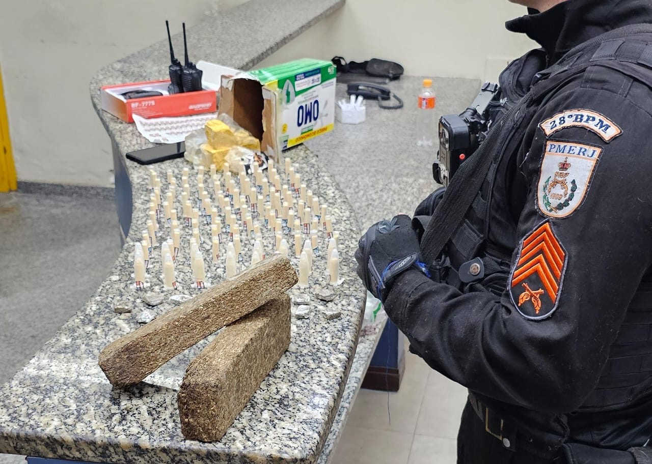 Além disso, foram encontrados ainda rádio de comunicação e outros materiais do tráfico. Os dois assumiram que a droga era deles. Eles foram levados para delegacia de Barra Mansa, onde foram autuados por tráfico de drogas, ouvidos e liberados em seguida.