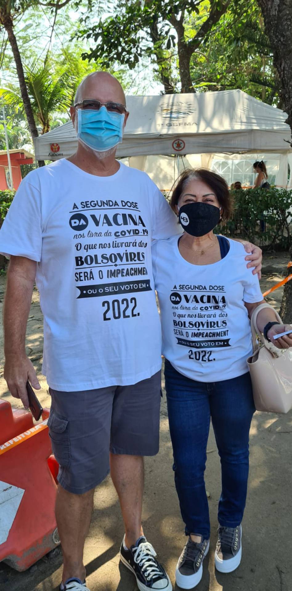 As camisas tinham a frase “A segunda dose da vacina nos livra da covid-19. O que nos livrará dos Bolsovírus será o impeachment ou o seu voto em 2022”. Para o professor, o impedimento o fez sentir como se ele não tivesse direito garantido de se manifestar. “Nos sentimos cerceados em nosso direito à liberdade de expressão e como se estivéssemos retornando aos anos de chumbo”, lamentou ele.