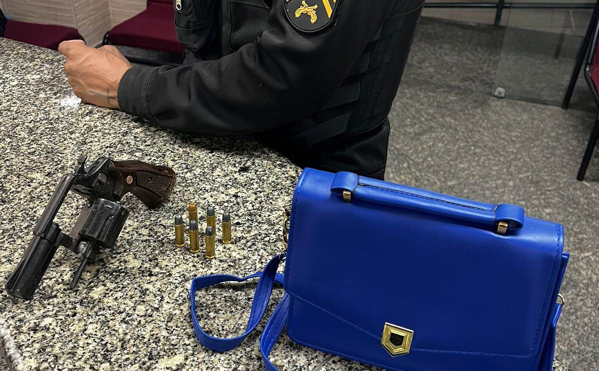 Em ronda de rotina, os agentes flagraram os dois em atitude suspeita – ele passando uma bolsa azul para a mulher.Desta maneira, os dois foram abordados e dentro da bolsa foram encontrados um revólver calibre 38, seis munições e um celular.
