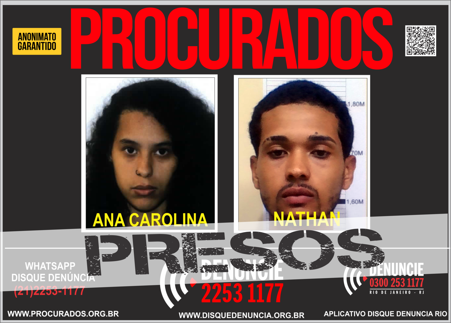 Policiais militares prenderam na noite deste sábado (06), na Rua João Batista, em Barra do Piraí, os criminosos, foragidos da Justiça, Ana Carolina de Cassia Gama, de 24 anos e Nathan da Silva Dias, de 23.