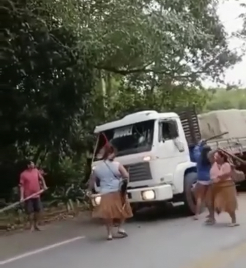 Índios da tribo Pataxós fizeram uma manifestação na manhã desta segunda-feira (9) na Rodovia Rio-Santos, entre