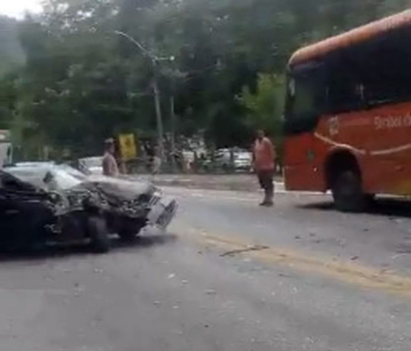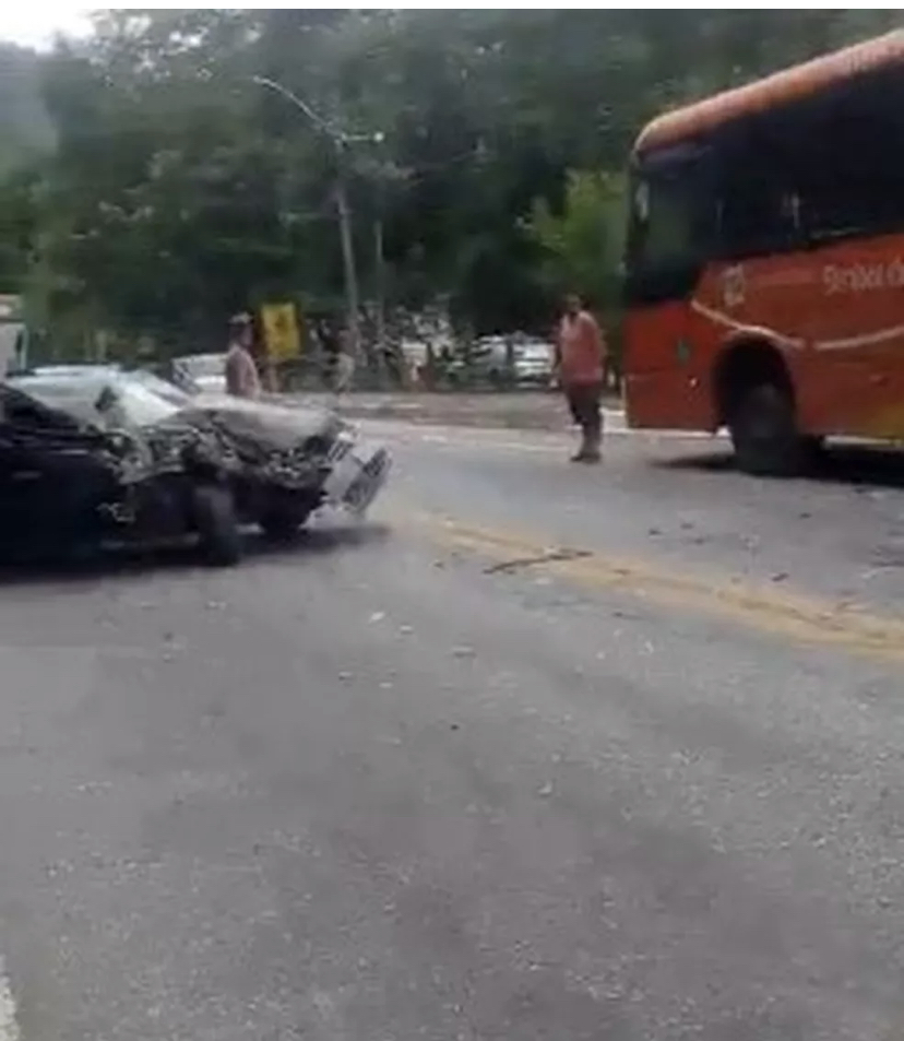 Um homem ficou ferido depois de bater com o carro na traseira de um ônibus na