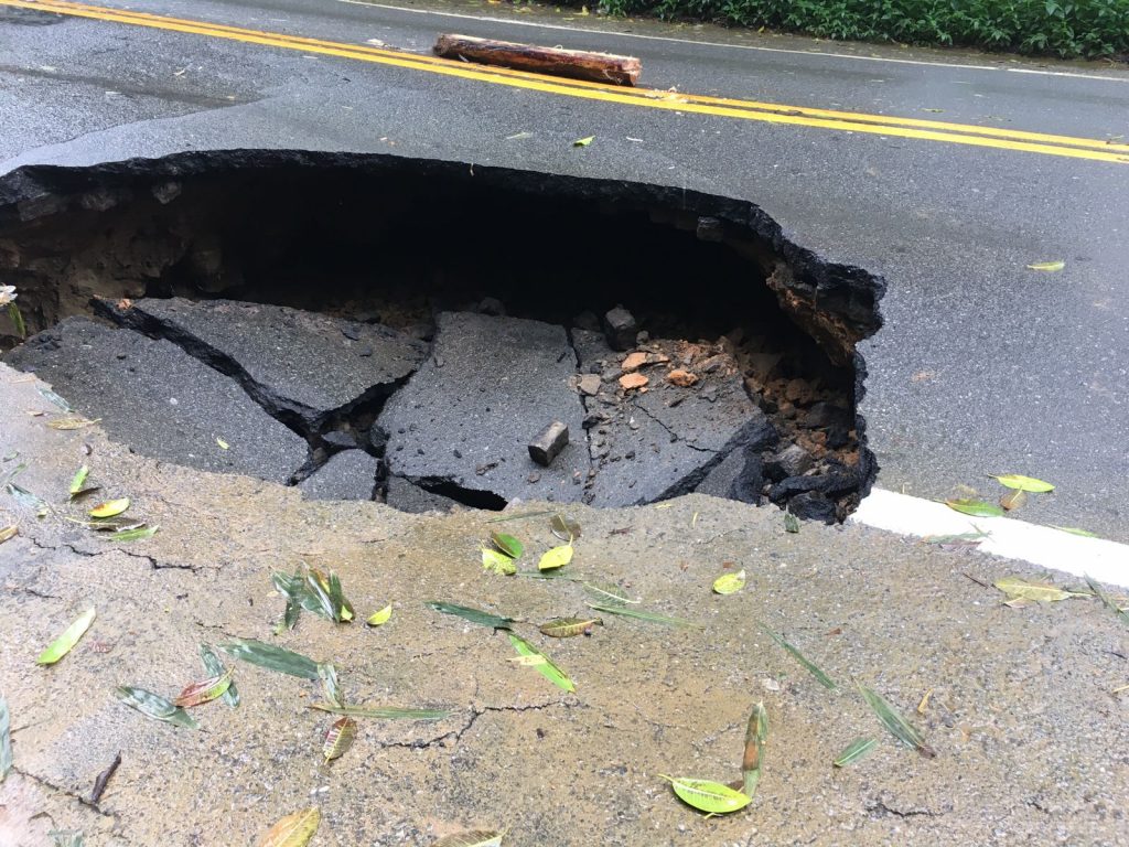 Uma cratera se abriu na madrugada desta segunda-feira (10) na RJ-155 (Rodovia Saturno Braga), que