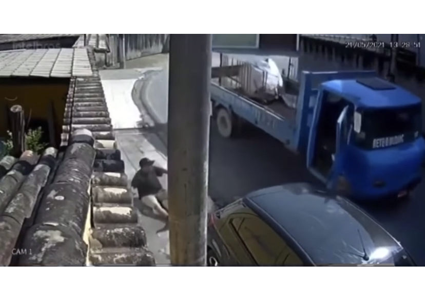Um vídeo, que circula nas redes sociais, mostra o momento em que um homem caindo de