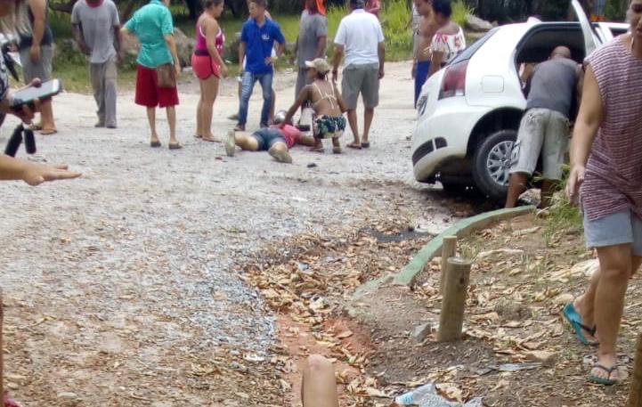 Um grave acidente, entre um carro de passeio (Pálio branco) e uma motocicleta, deixou pelo menos