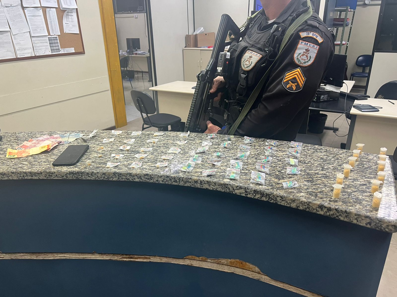 Um suspeito, de 24 anos, foi preso na noite desta terça-feira (14) por tráfico de drogas