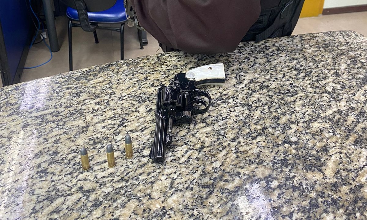A Polícia Militar prendeu um homem de 32 anos após ser flagrado com um revólver calibre