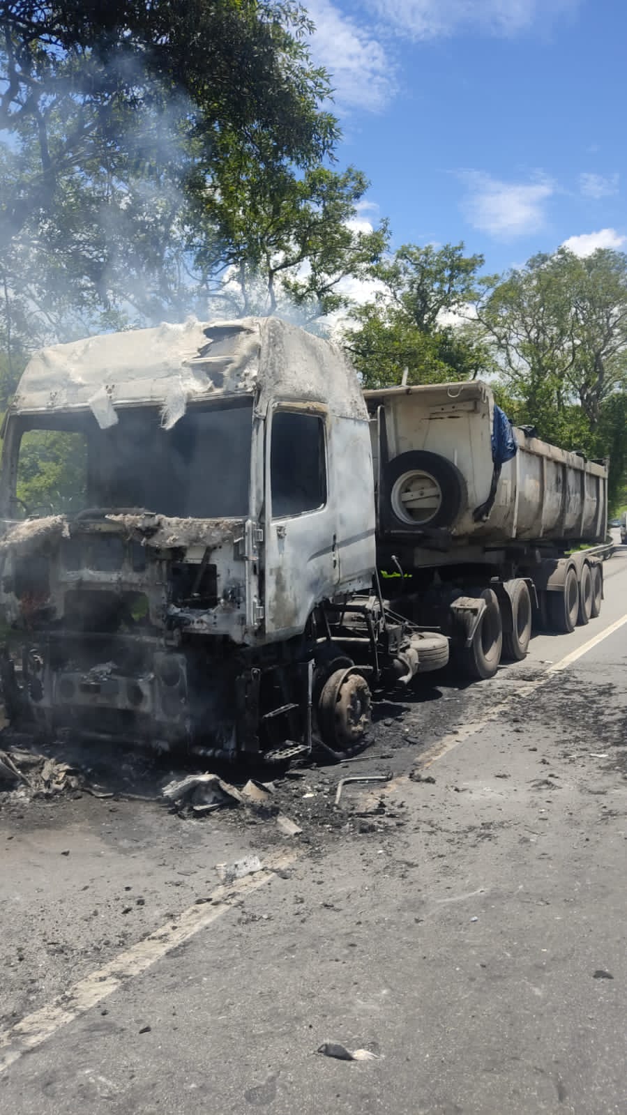 Uma carreta pegou fogo no final da manhã desta segunda-feira (6) em Barra Mansa. O incêndio