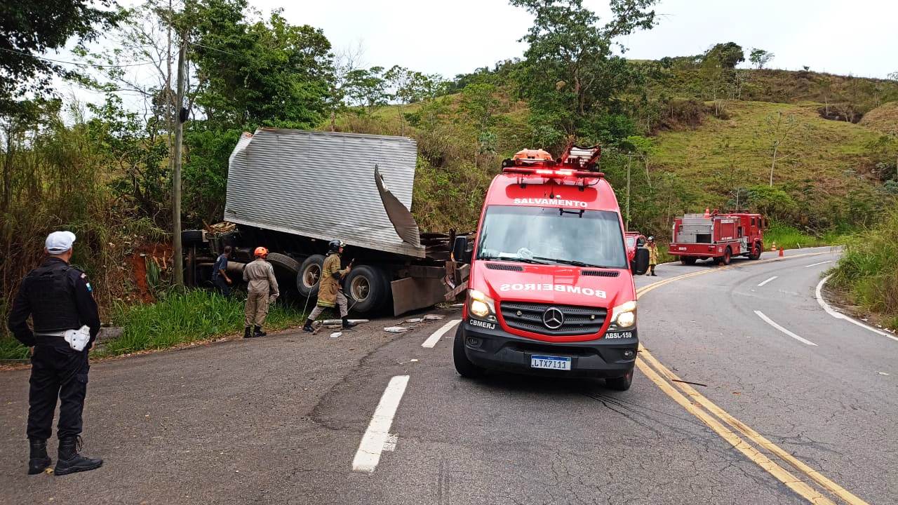 O motorista de um caminhão, de 47 anos, ficou ferido em um acidente na tarde da