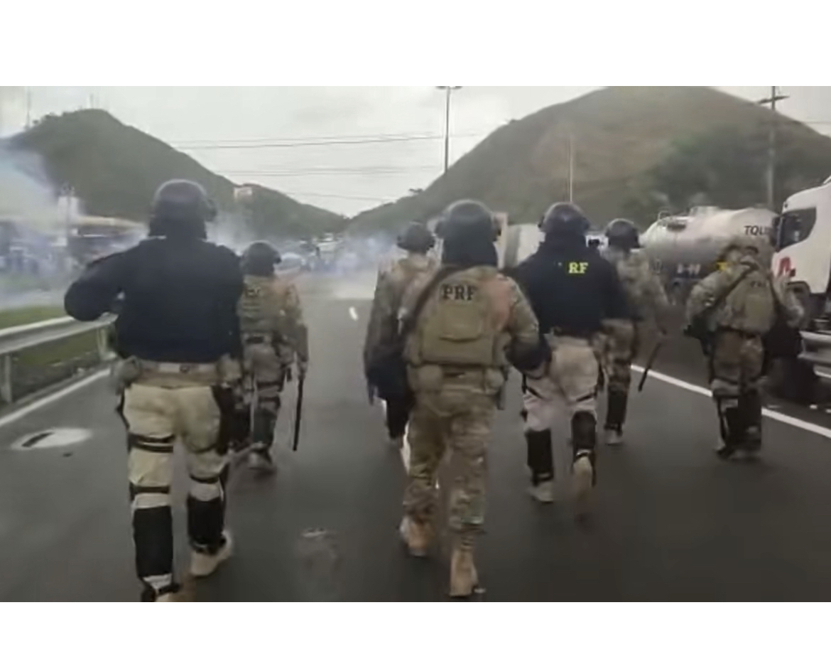 Bombas de gás lacrimogênio foram usadas para liberar a pista sentido Rio no km 281 da