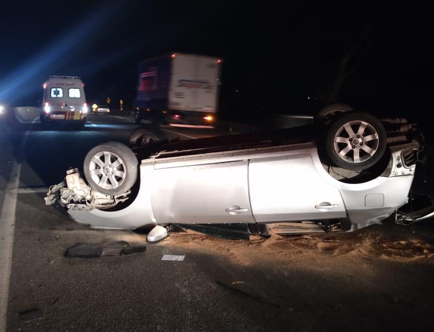 Um carro capotou na noite desta terça-feira (31) na Rodovia Presidente Dutra, em Barra Mansa (268