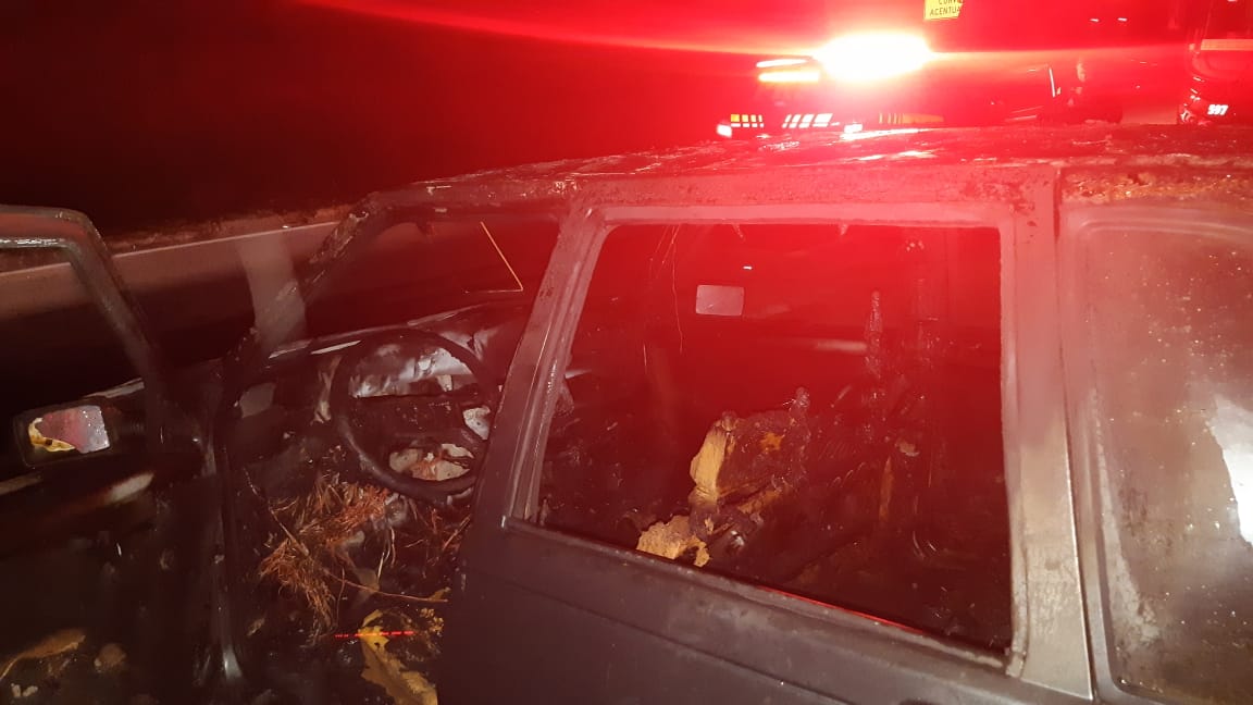 Um carro pegou fogo e foi abandonado na noite de sábado (5) em uma pista de