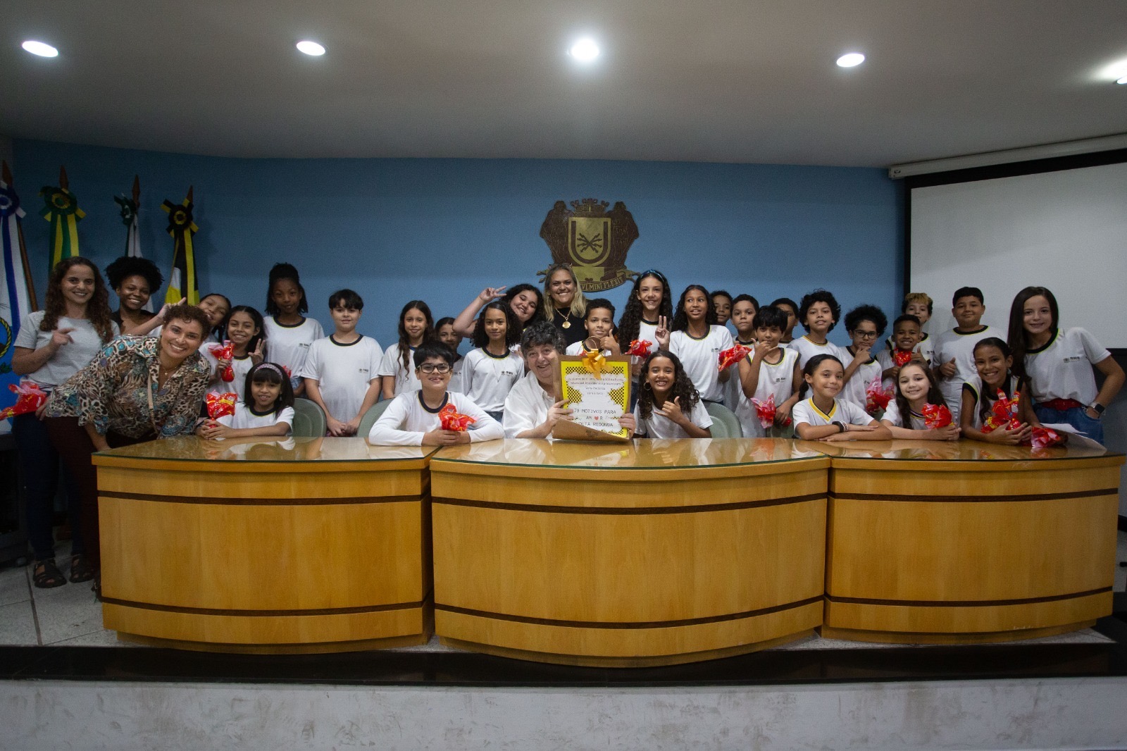 O prefeito de Volta Redonda, Antonio Francisco Neto, recebeu das mãos dos alunos do 5º ano