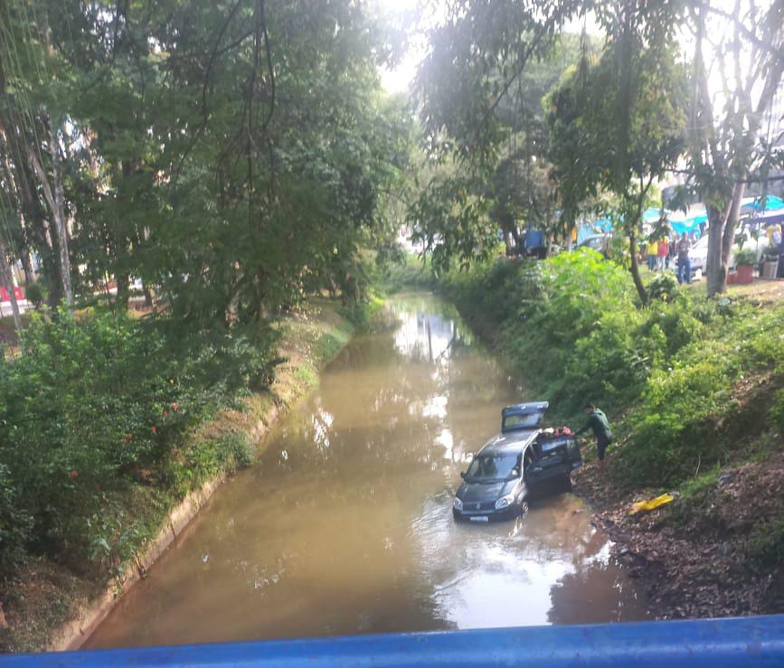 Um carro caiu em um córrego, na manhã deste sábado (1º) em Barra Mansa. O caso