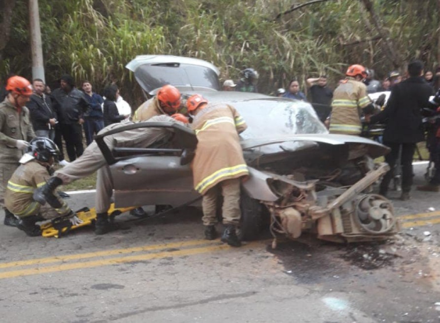 Um acidente envolvendo dois carros deixou cinco pessoas feridas no final da madrugada deste sábado (1º)
