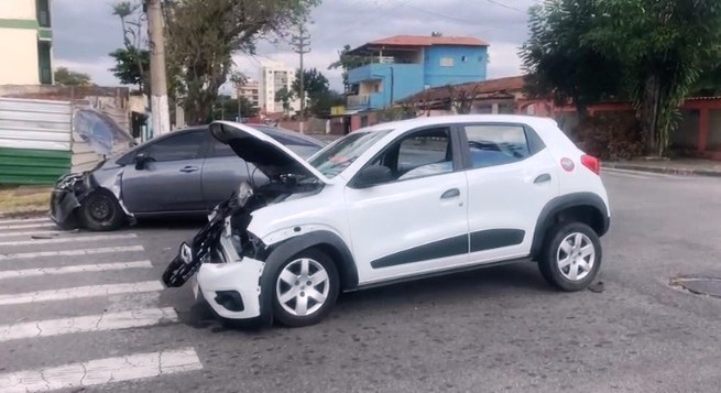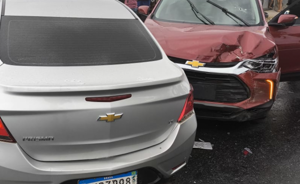 Um acidente entre dois carros deixou três pessoas feridas no final da manhã deste sábado (25)