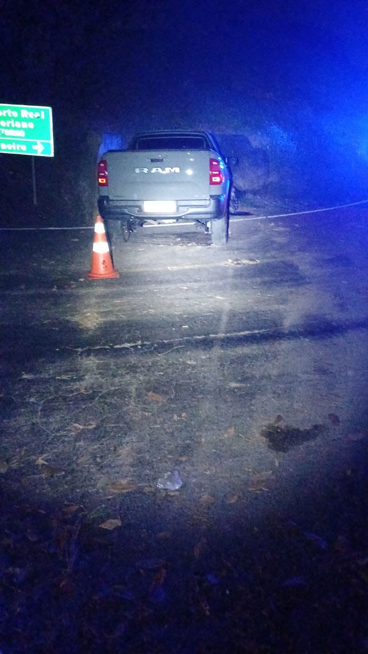 Uma caminhonete de luxo – RAM Rampage – bateu num barranco na madrugada deste sábado (25)