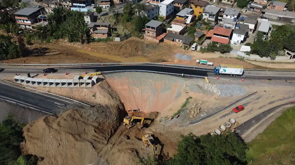 O trecho da Rodovia Lucia Meira (BR-393), em Barra do Piraí, onde uma cratera se abriu
