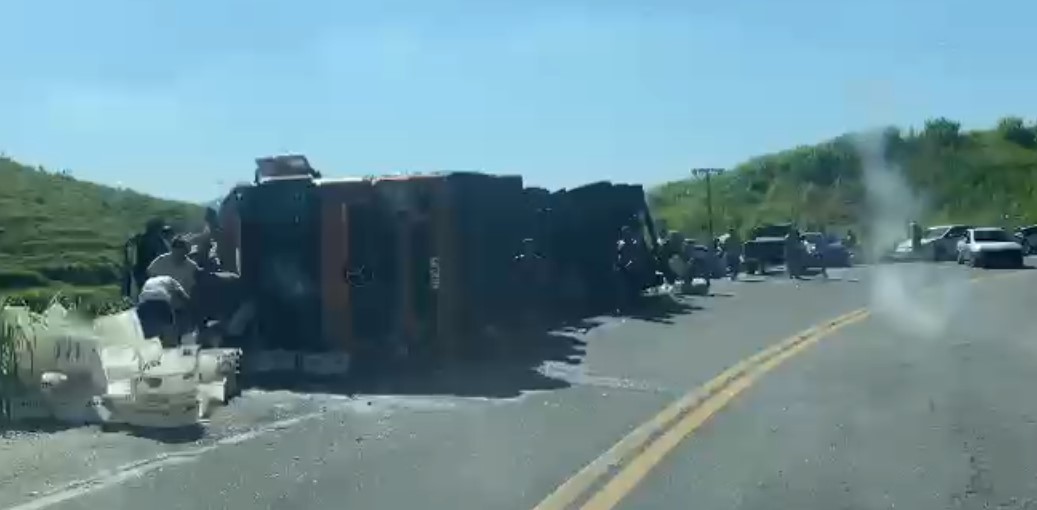Um caminhão tombou na manhã desta quarta-feira (1°) em Barra Mansa. O acidente aconteceu por volta