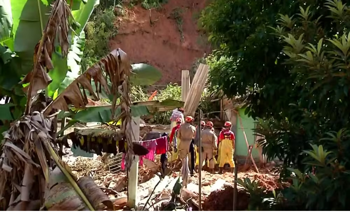 Deslizamentos de terra atingiram casas em Mendes (RJ) na madrugada desta quinta-feira (22). Há registros de