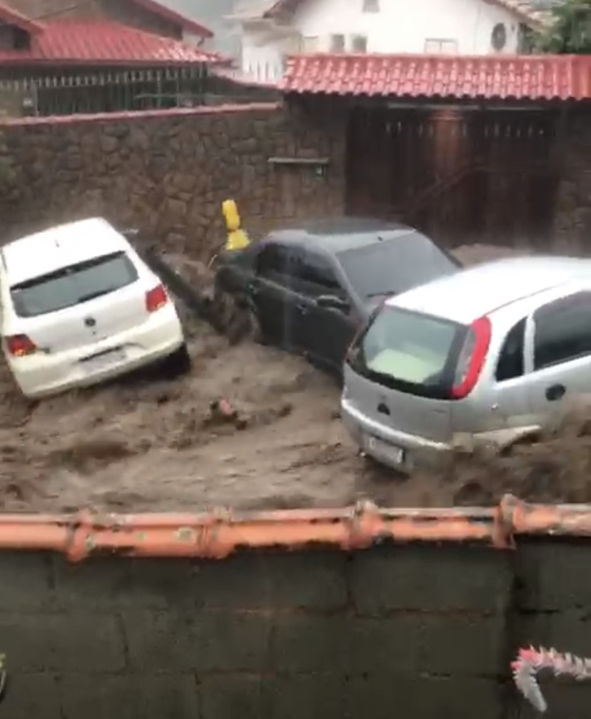 Uma forte chuva, acompanhada de ventania, causou transtornos a moradores de Resende (RJ) na tarde desta