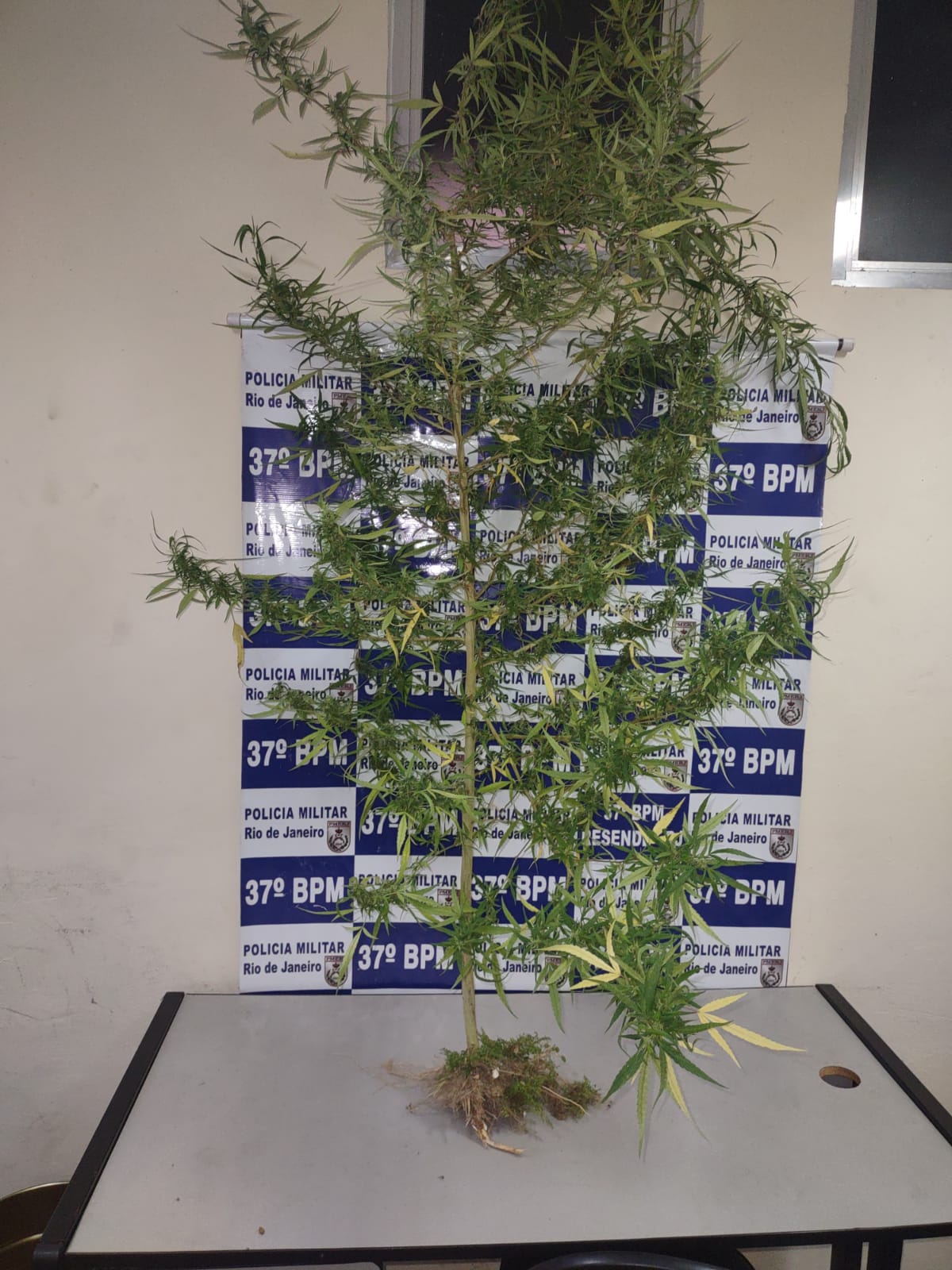 A Policia Militar apreendeu nesta quarta-feira (24) um arbusto de maconha com a medida de dois