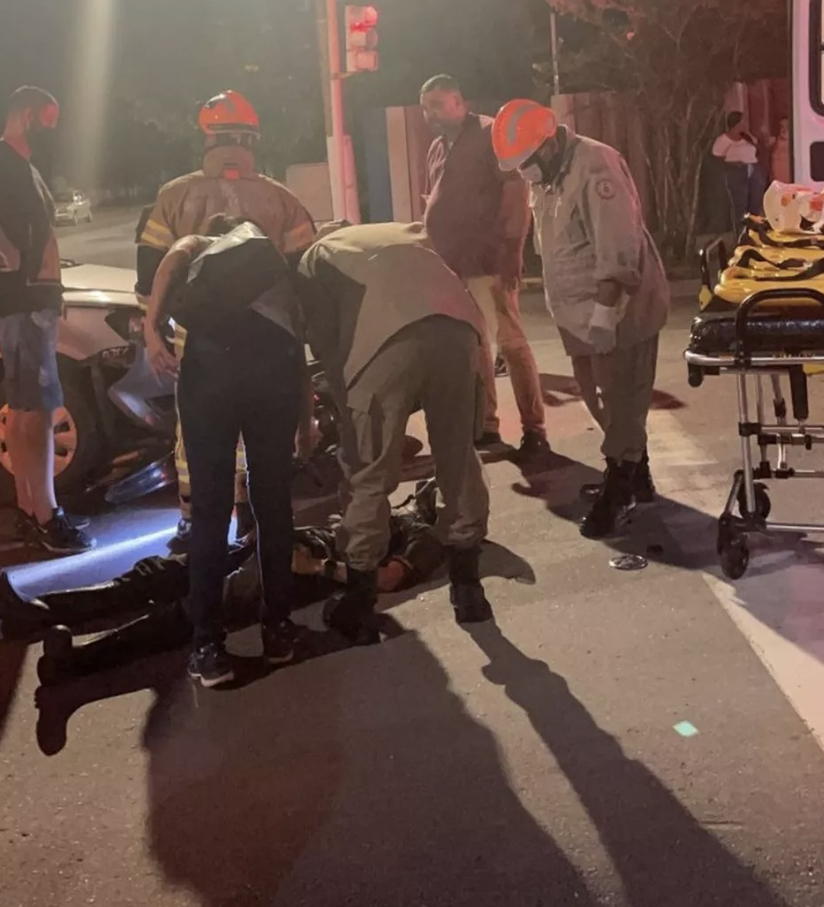 Um motociclista ficou ferido após se envolver em um acidente com carro na noite de sexta-feira