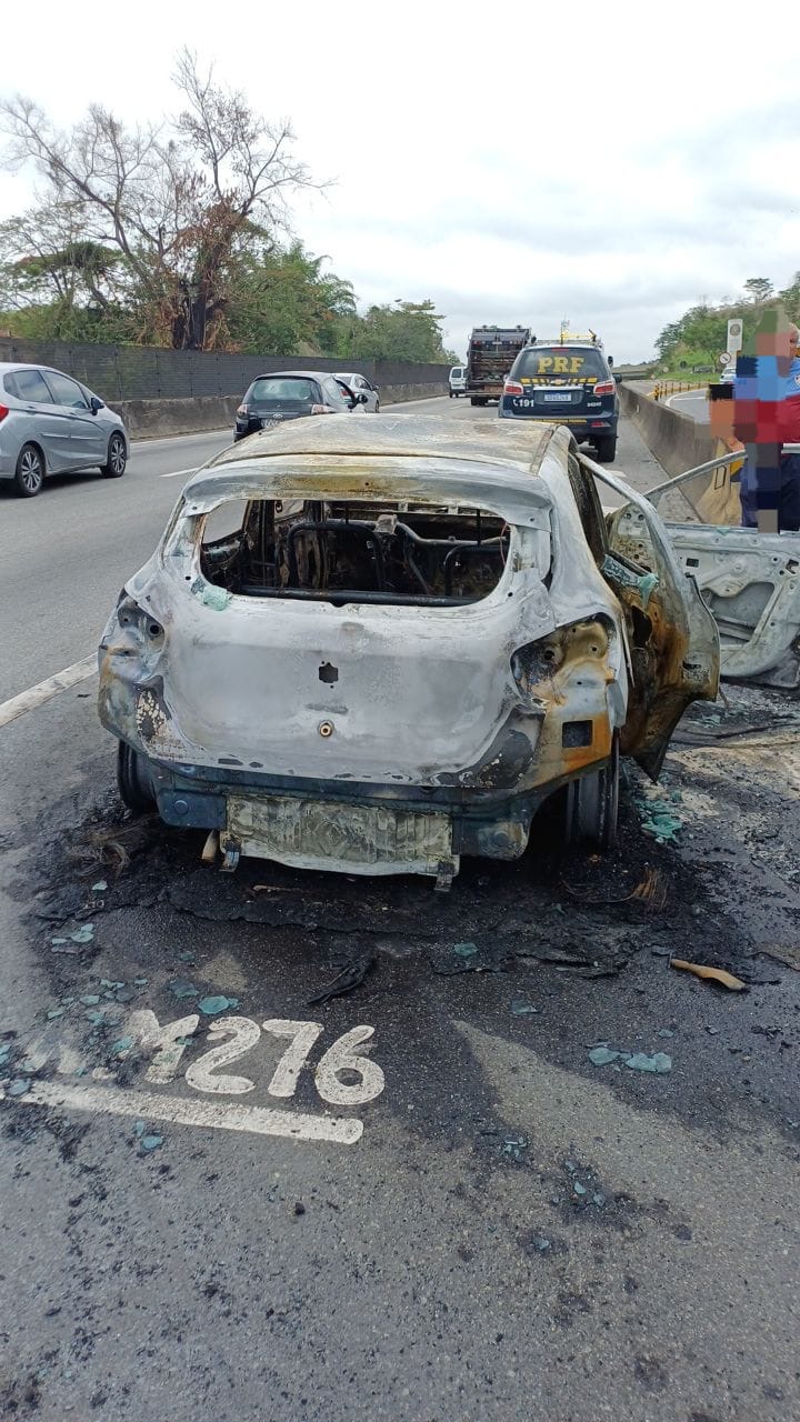 Um veículo pegou fogo na manhã desta sexta-feira (7) na Rodovia Presidente Dutra (BR-116), na altura
