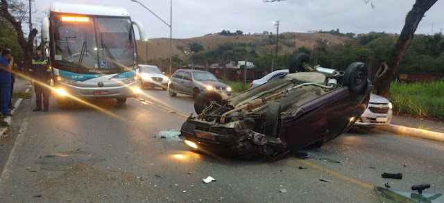 Um motorista, de 39 anos, ficou ferido após o seu carro (Fiat Uno) capotar na Via Sérgio