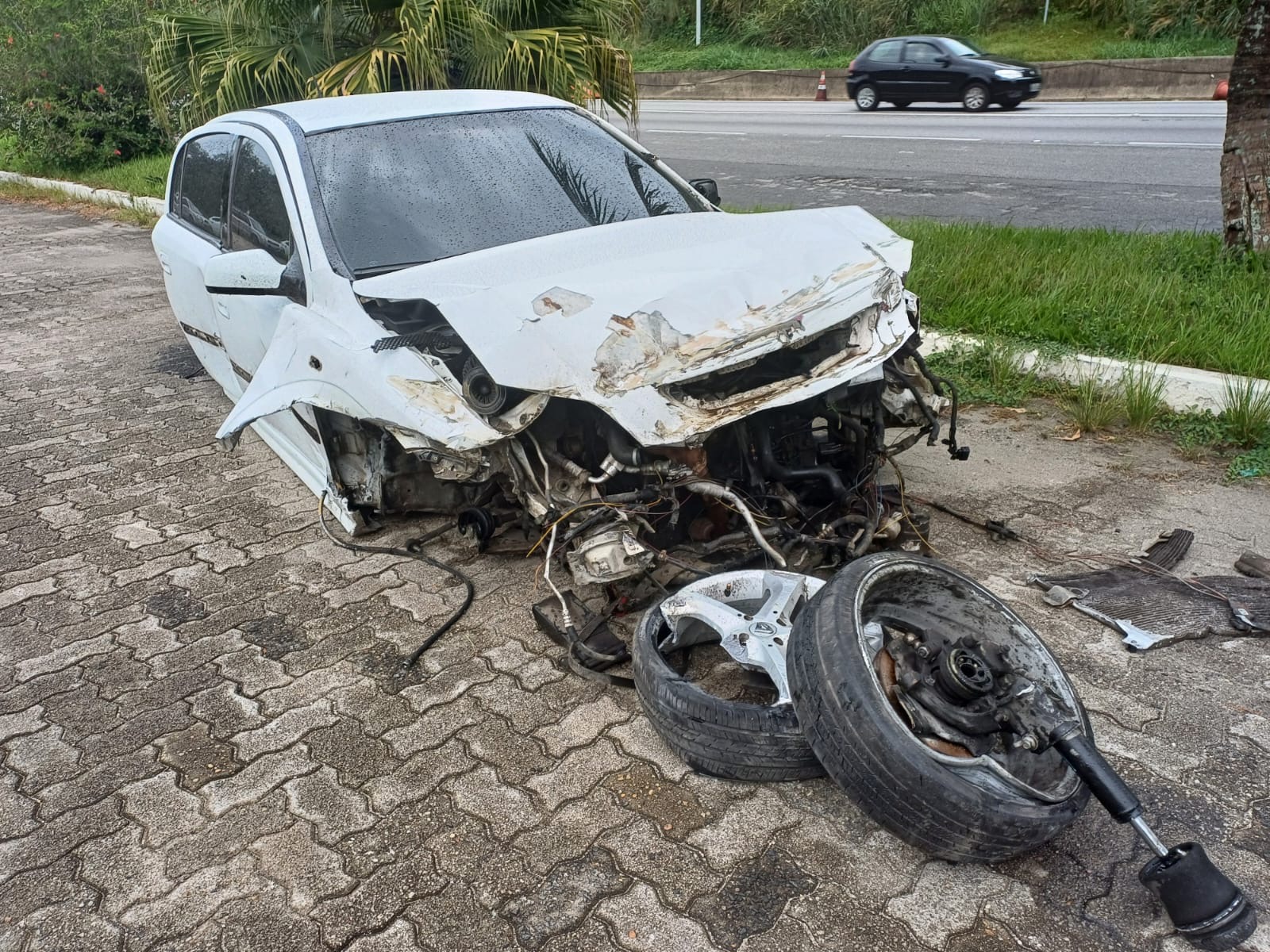Um carro bateu numa barreira na Via Dutra, em Resende. O caso ocorreu na madrugada desta