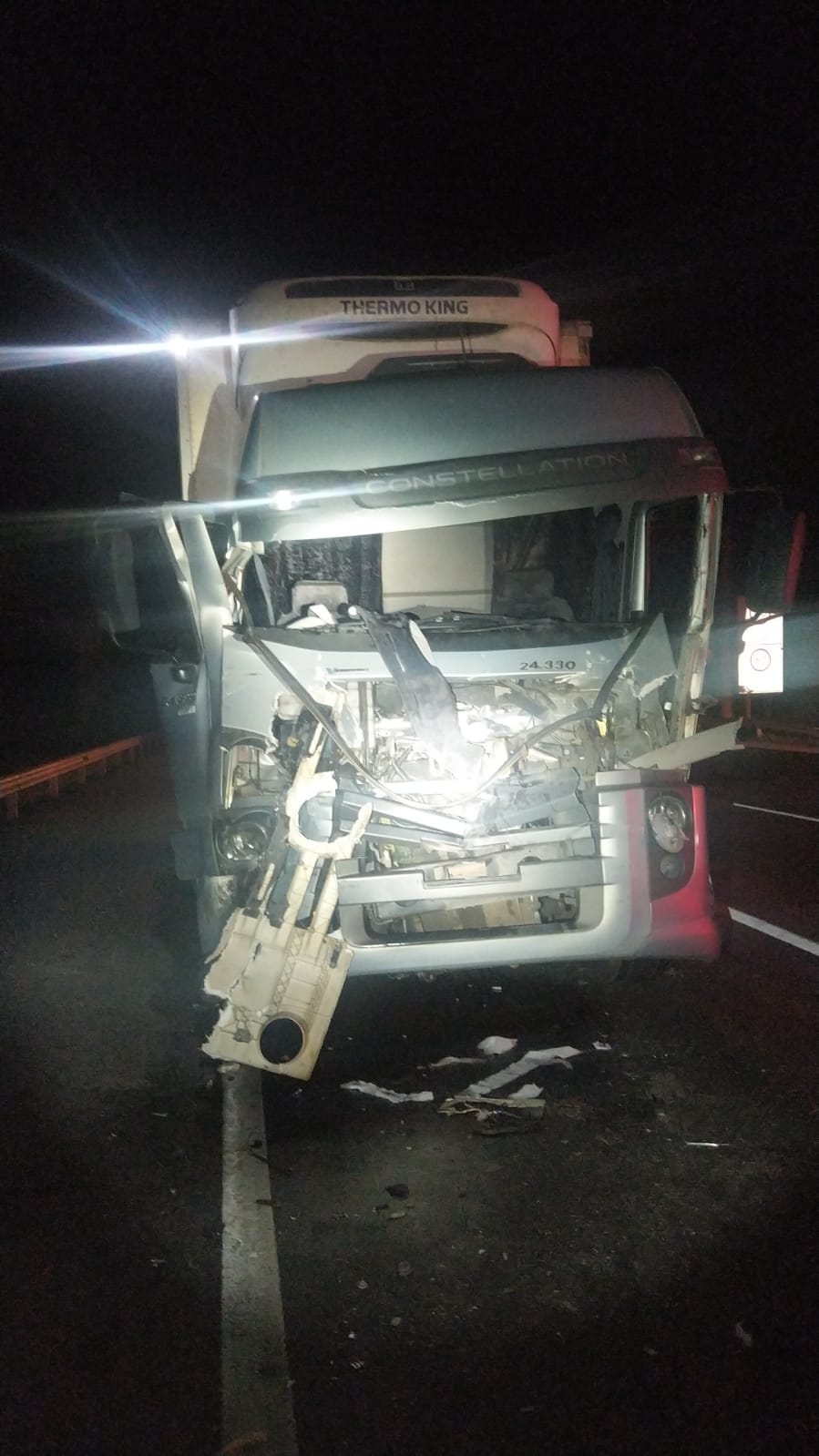 Um motorista de caminhão, de 44 anos, ficou ferido após sofrer um acidente na madrugada desta