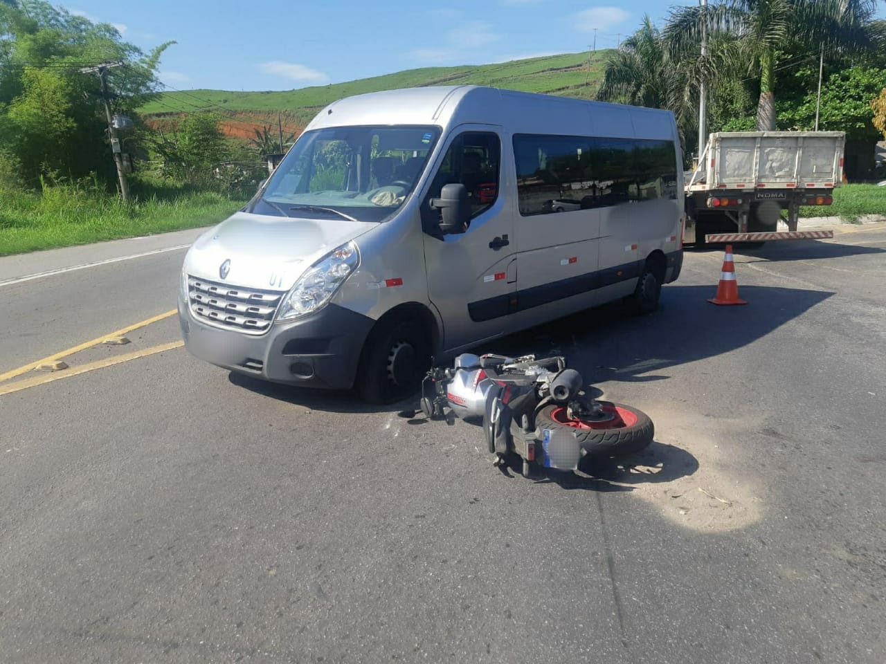 Um motociclista, que não teve a identidade divulgada, ficou ferido após um acidente com uma van