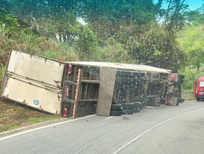 Um caminhoneiro morreu na manhã desta terça-feira (4) após o veículo que conduzia tombar na pista