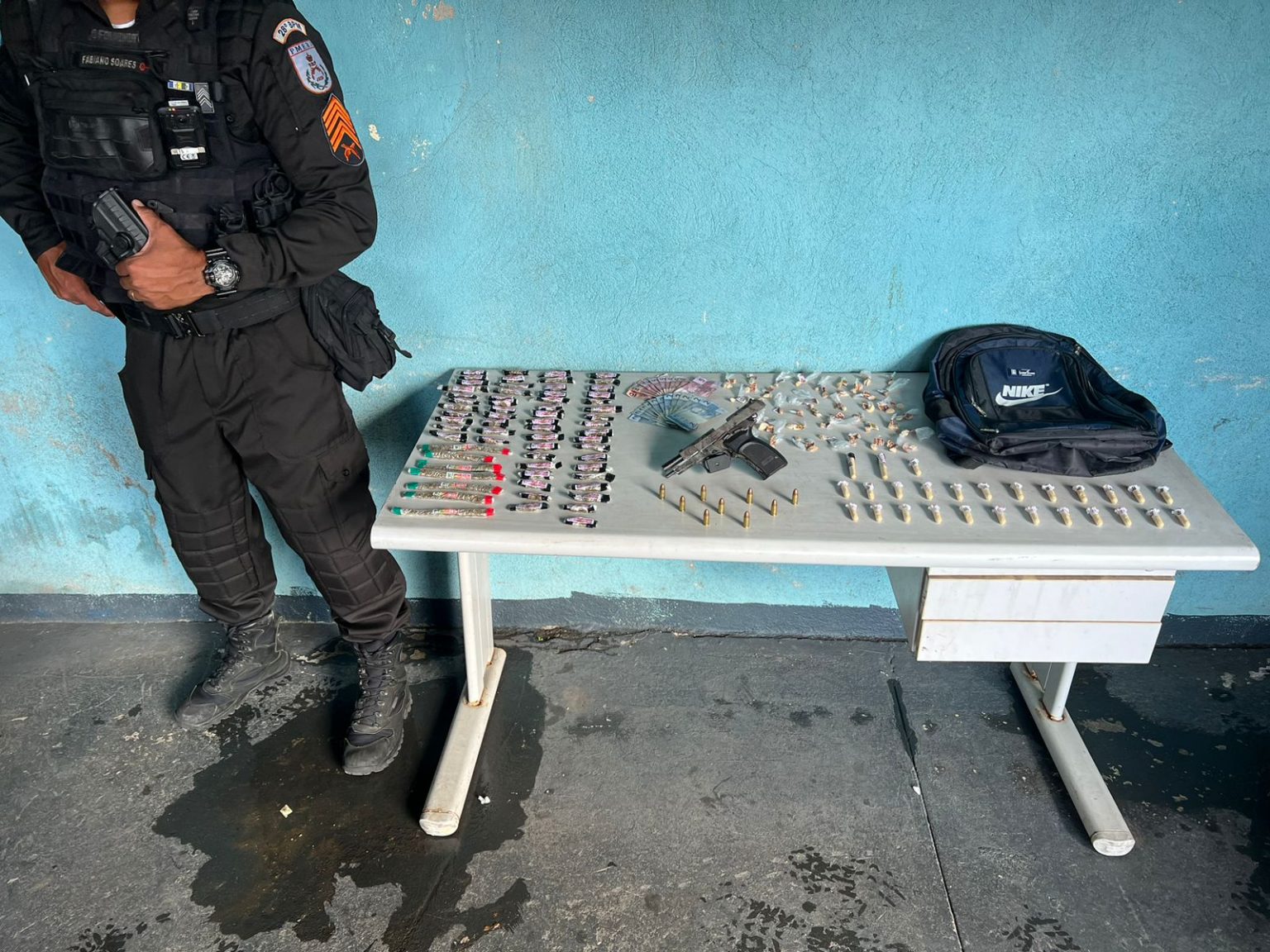 Um traficante foi preso na manhã desta sexta-feira (14) após ser flagrado com drogas e um