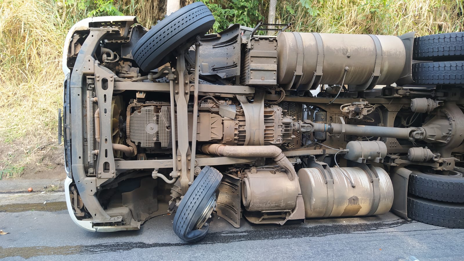 Uma carreta – transportando carnes – tombou na manhã desta terça-feira (20) na Serra das Araras,