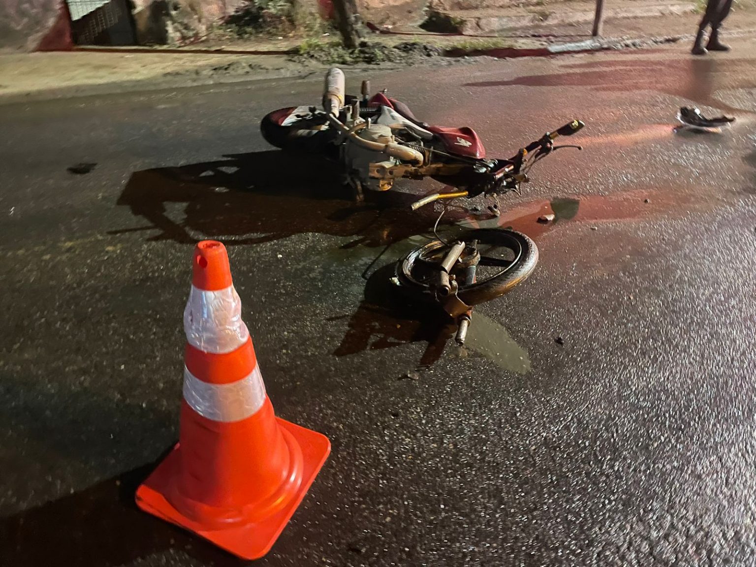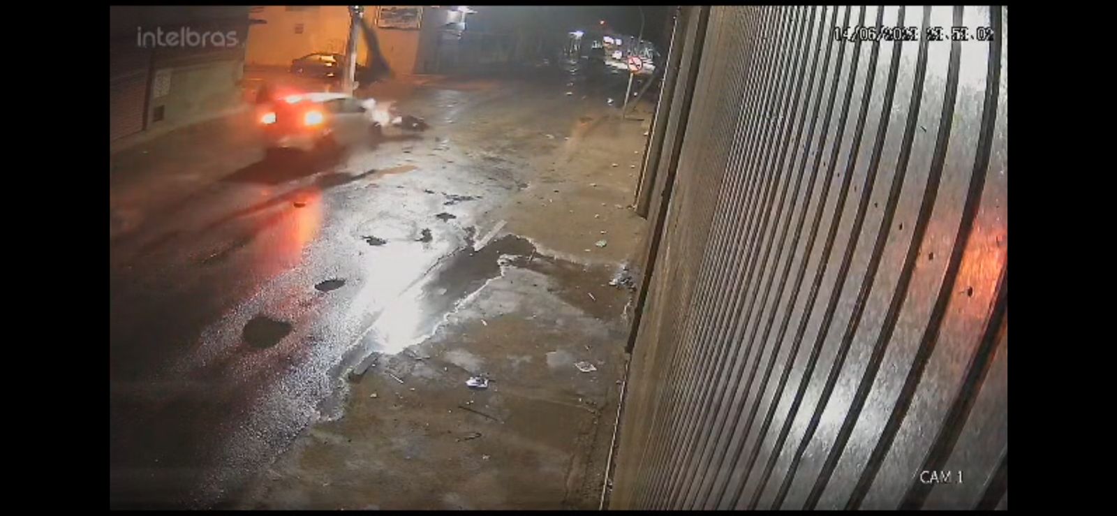 Um vídeo mostra o momento em que um carro atingiu o motociclista no final da noite