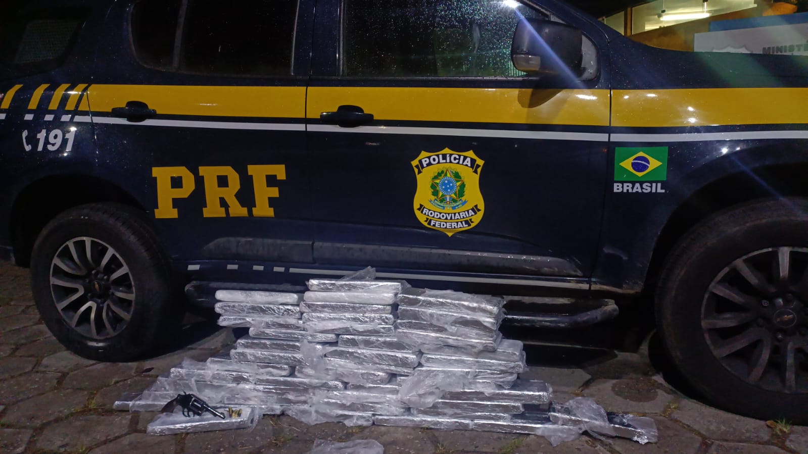 A Polícia Rodoviária Federal apreendeu na noite desta quarta-feira (14) 42 quilos de maconha e 400