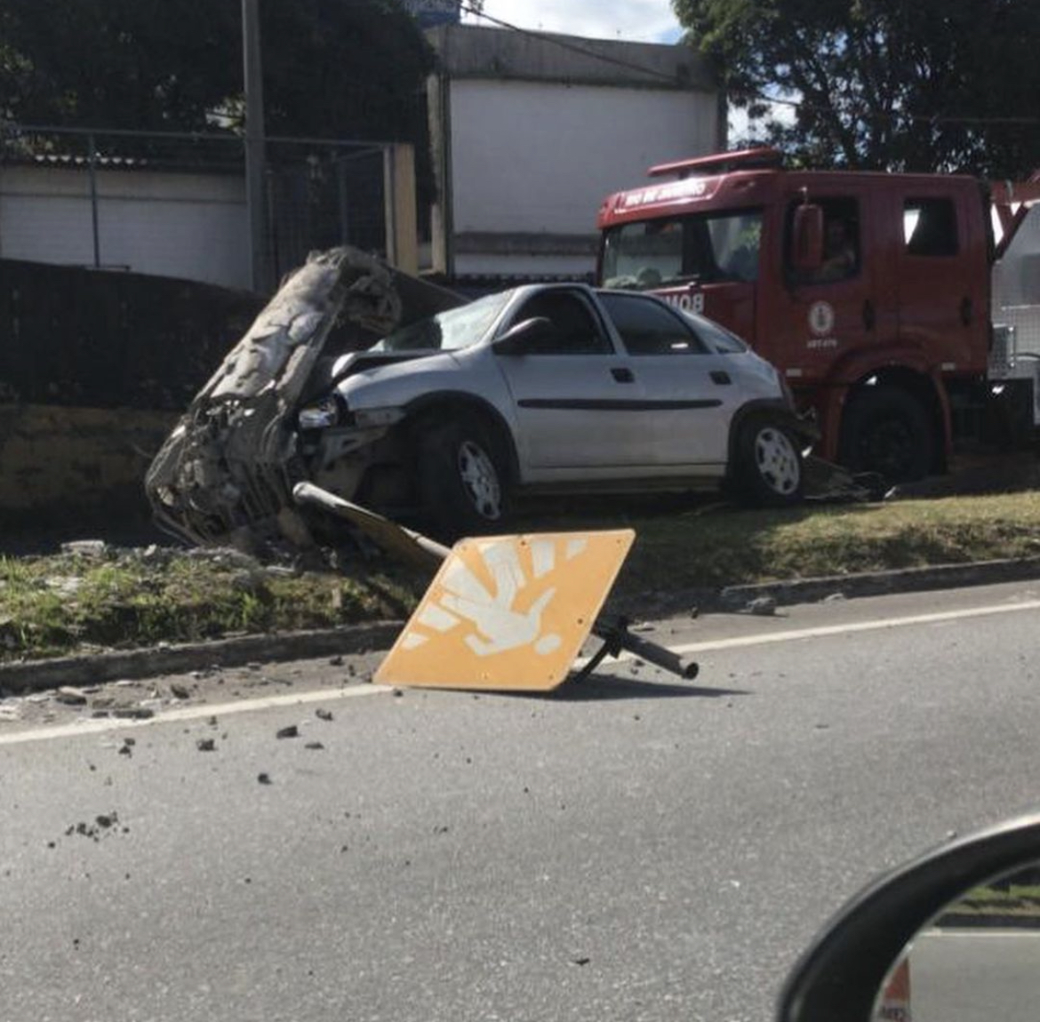 Um carro – Corsa prata – derrubou um poste na tarde desta sexta-feira (26) em Volta