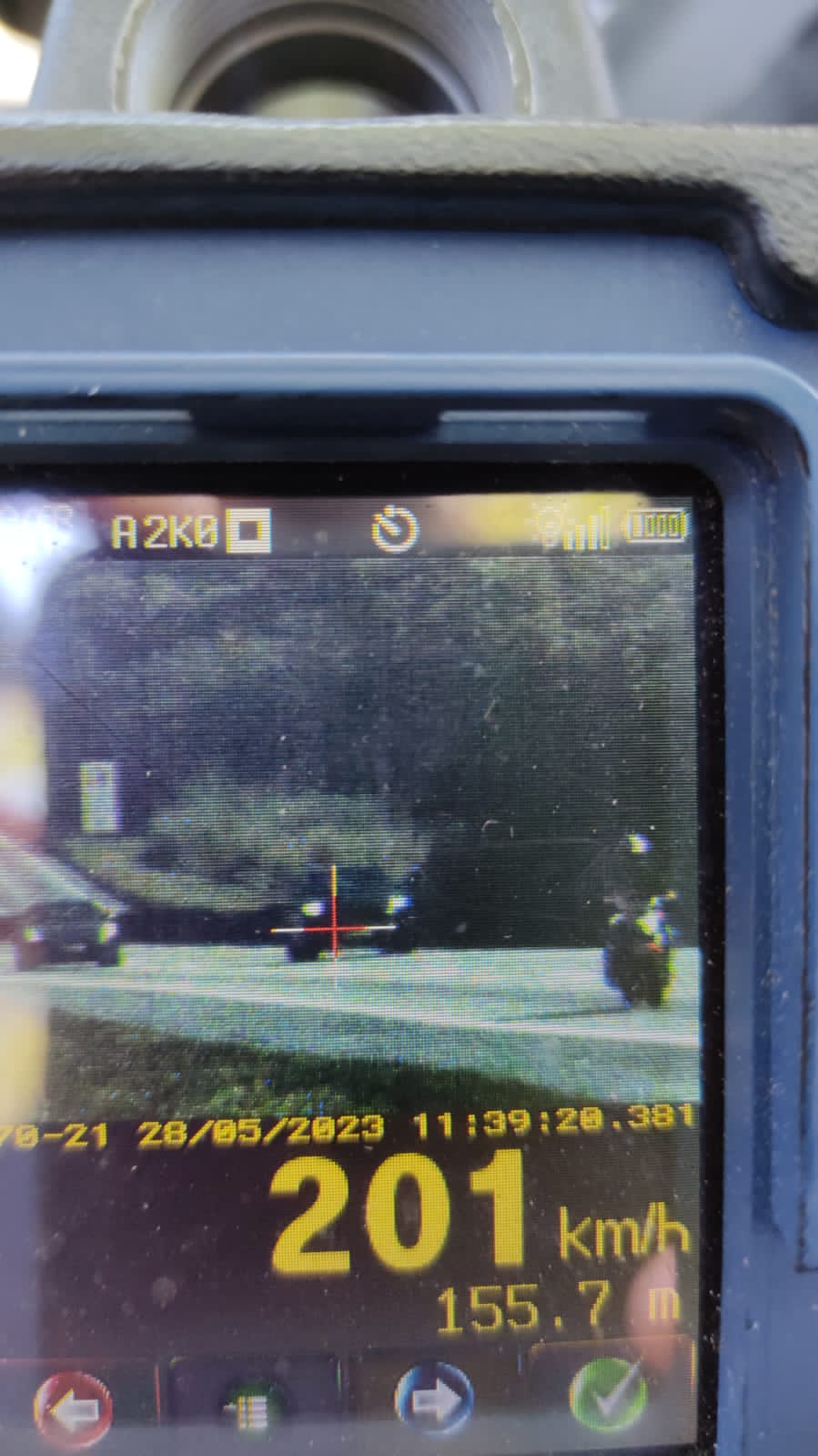 A Polícia Rodoviária Federal flagrou neste domingo (28) um carro trafegando a 201 km/h na Via