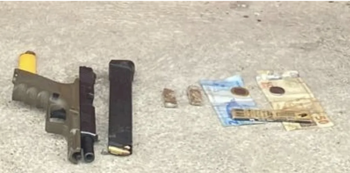 Um suspeito de 21 anos foi preso após esconder uma pistola 9 mm dentro de carrinho