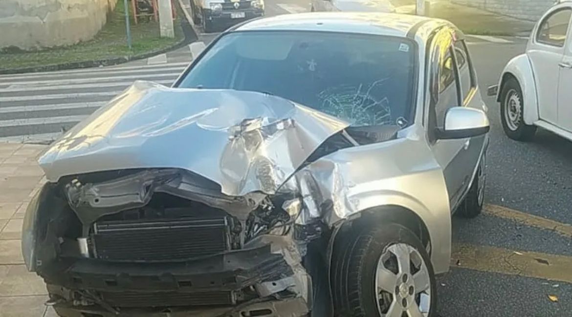 Um acidente entre um ônibus e um carro deixou um homem ferido na tarde desta segunda-feira