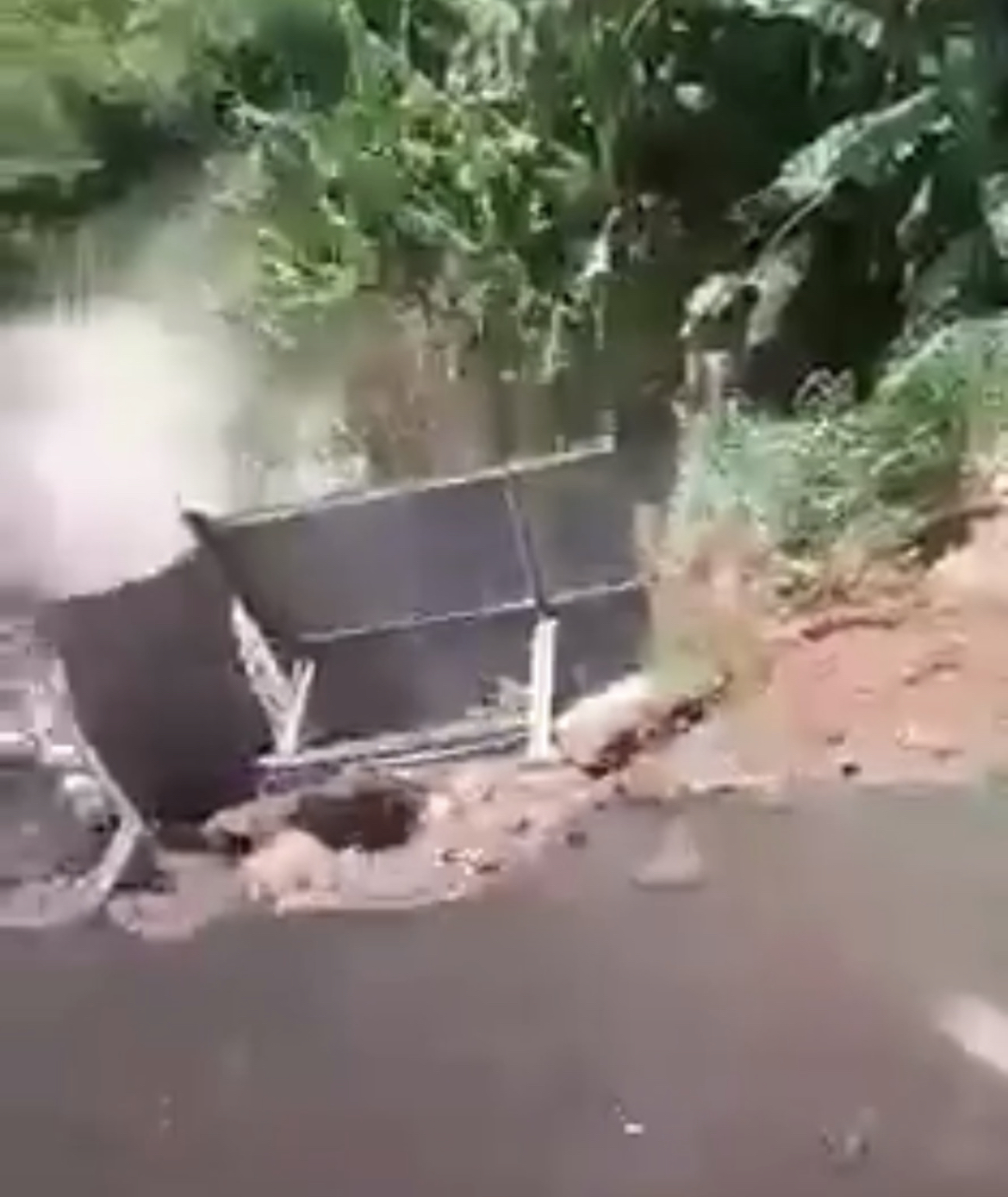 Um ponto de ônibus desabou na manhã desta quinta-feira (23) em Barra Mansa. O caso ocorreu
