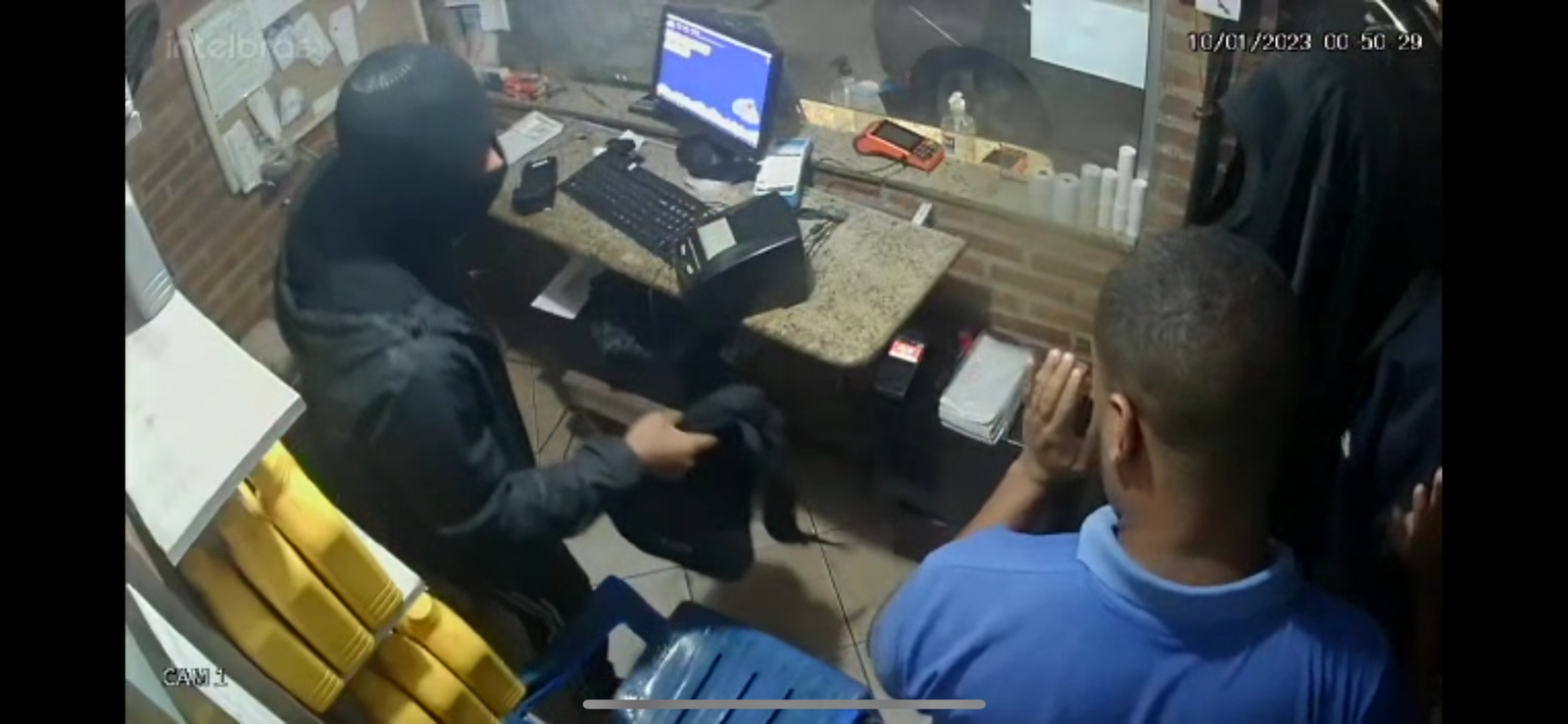 Imagens de segurança mostram momento em que quatro homens assaltaram o posto de combustível Sol Nascente,