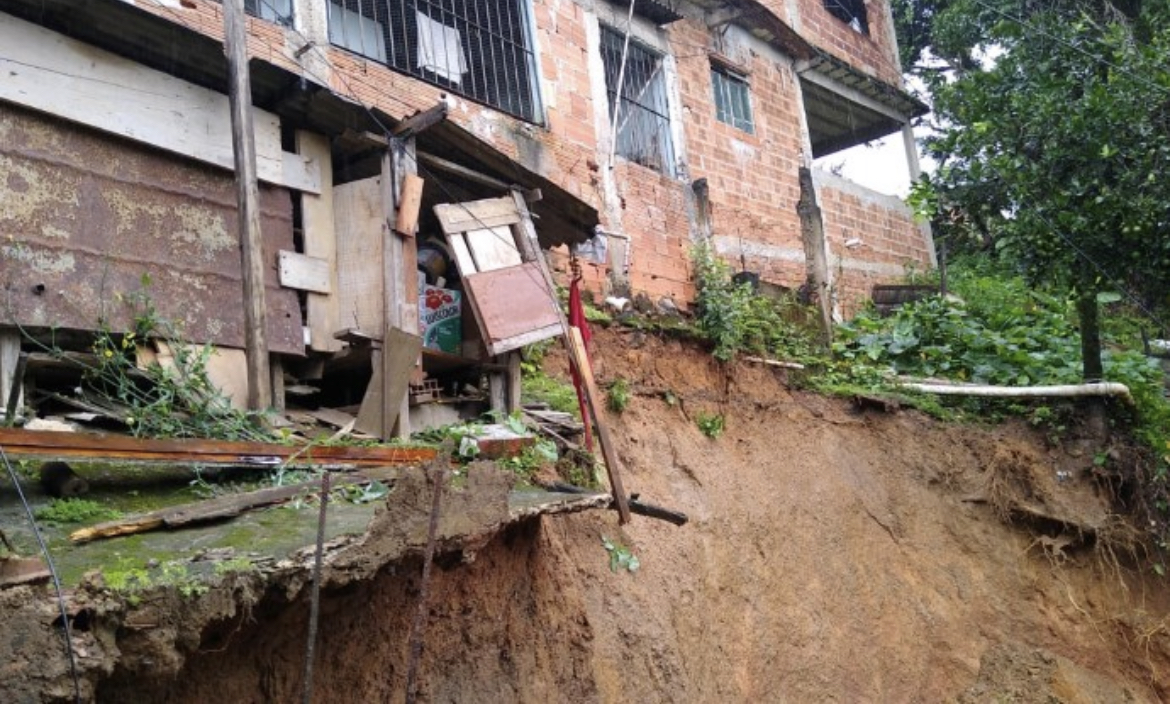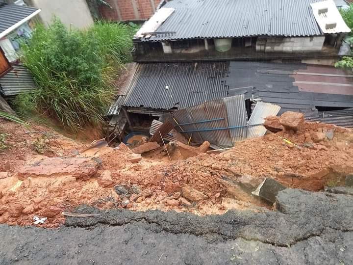Um deslizamento de terra atingiu uma casa no Morro da Caviana, no bairro Santo Agostinho, em