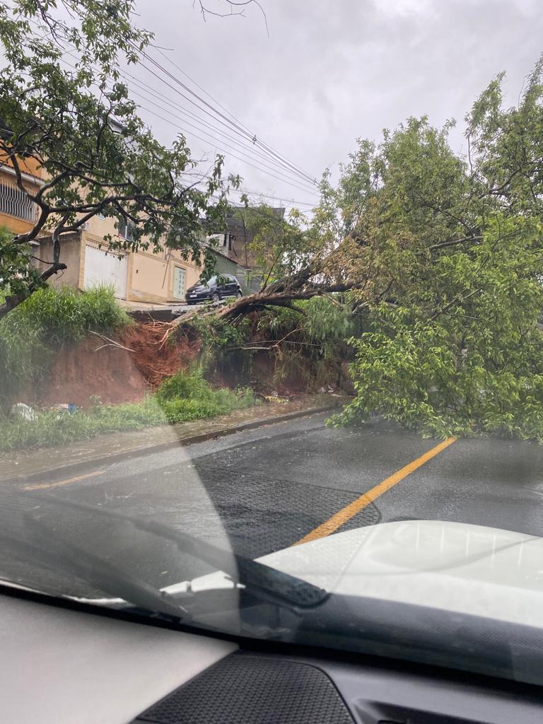 A intensa chuva que caiu na tarde desta segunda-feira (9) causou estragos em pontos de Volta
