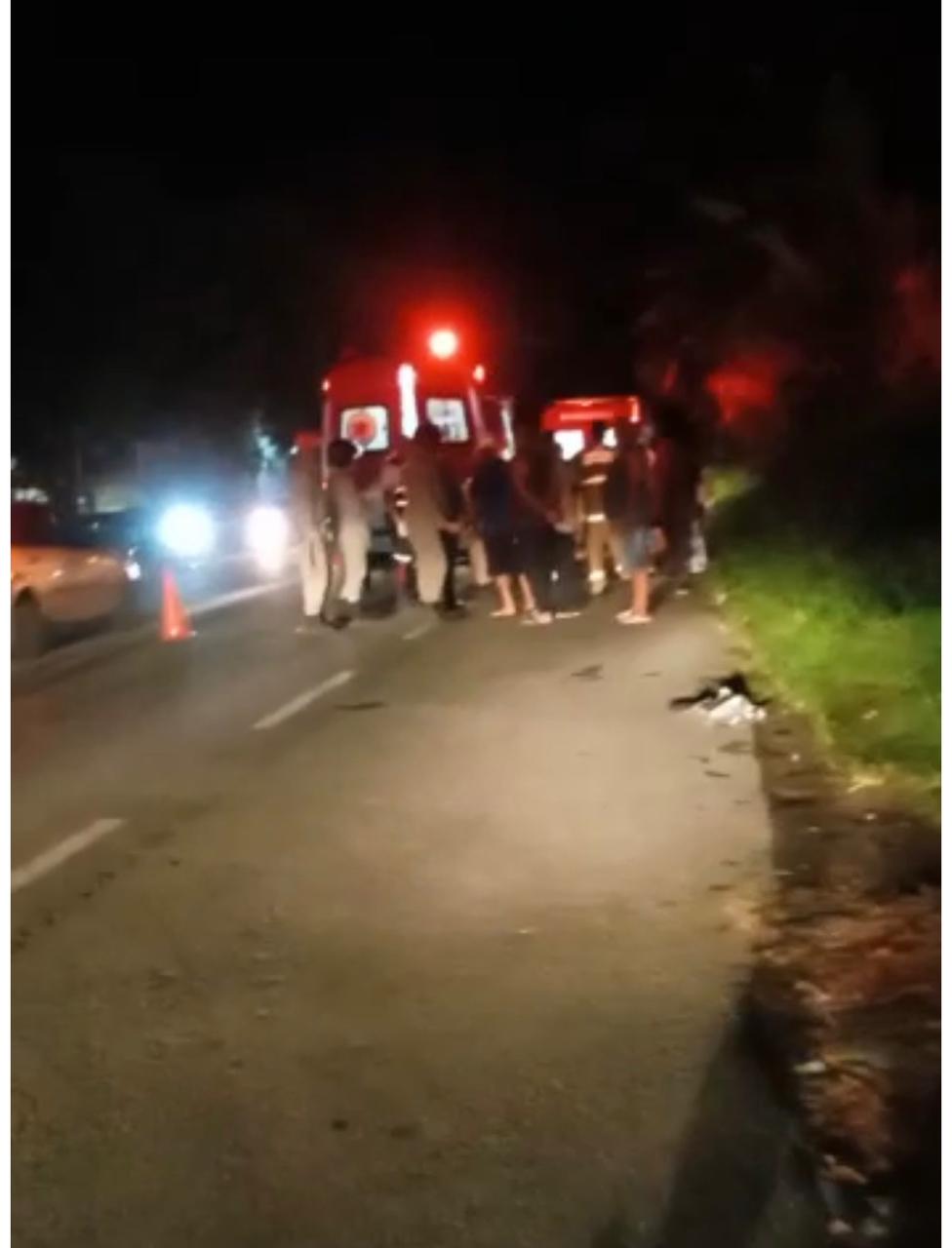 Um acidente entre um moto e quadriciclo deixou pelo menos dois feridos na noite desta quarta-feira