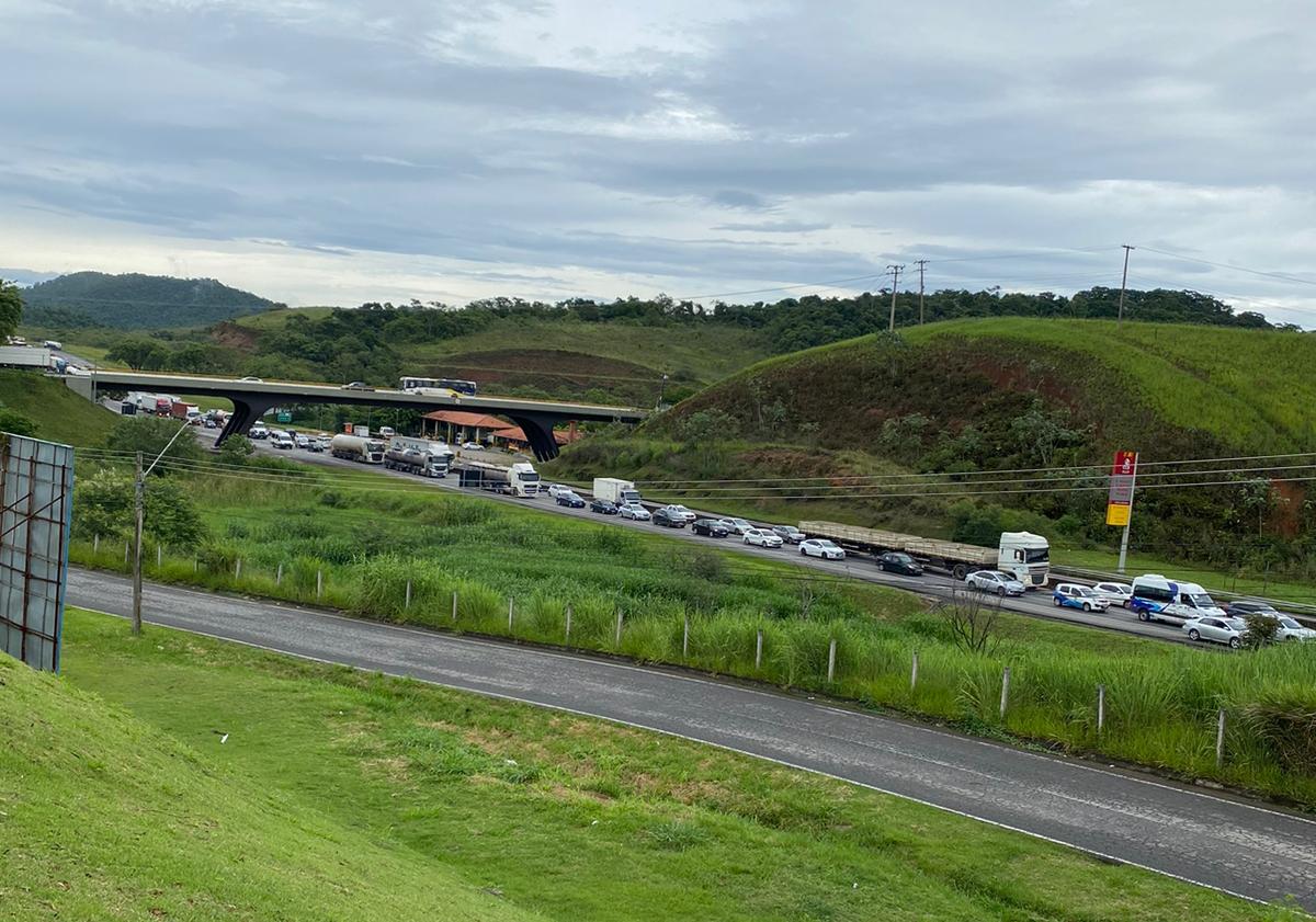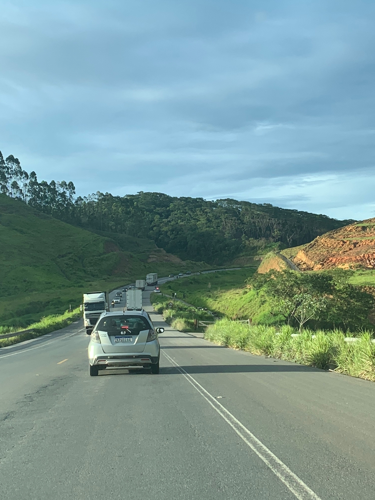 Um acidente entre dois caminhões e um carro deixou três pessoas feridas na manhã desta quarta-feira