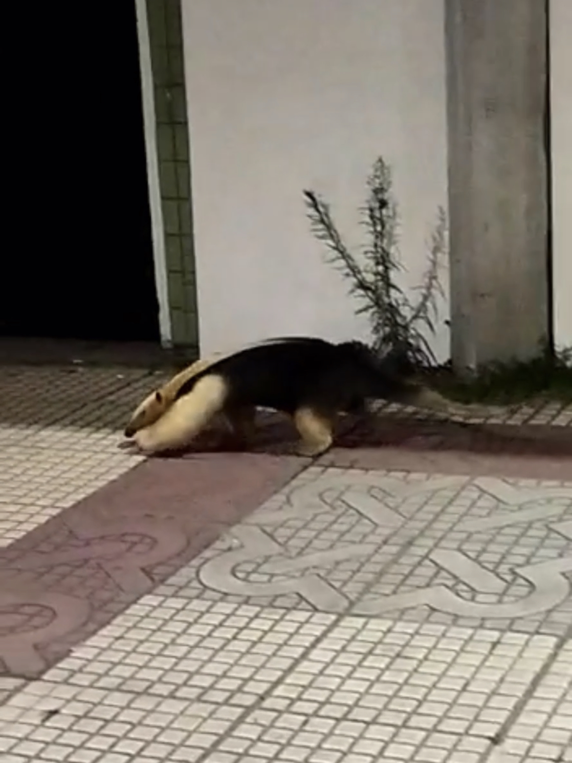 Um tamanduá-mirim foi flagrado passeando tranquilamente pela calçada da Avenida Amaral Peixoto, em Volta Redonda. O