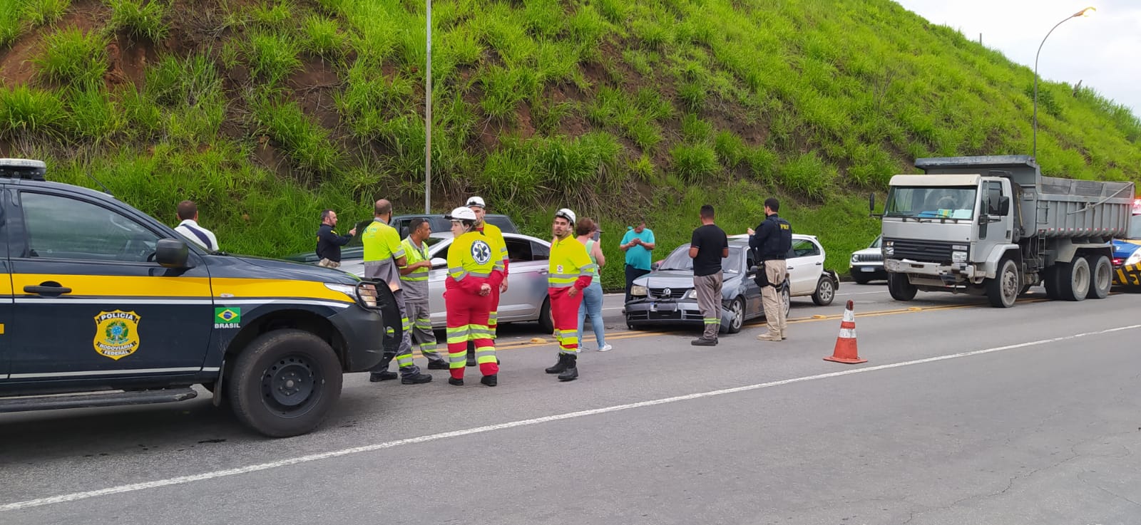 Um engavetamento entre quatro veículos foi registrado no final da tarde desta segunda-feira (12) na BR-393,