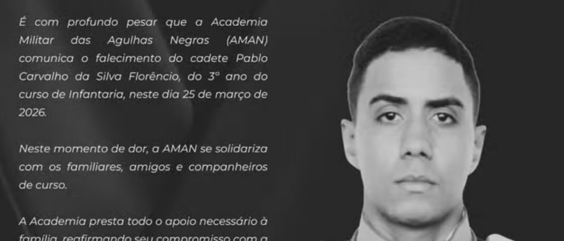 Um cadete da Academia Militar das Agulhas Negras (AMAN) morreu nesta quarta-feira (25), em Resende (RJ),